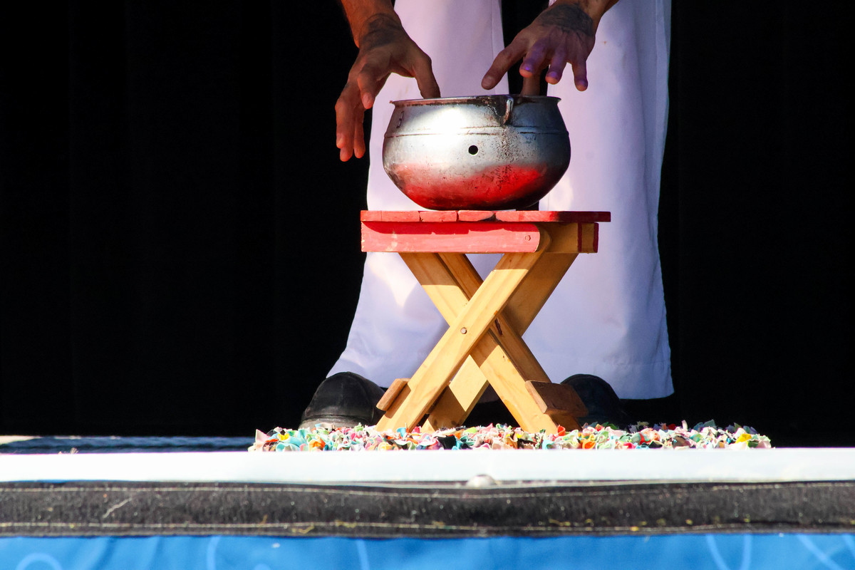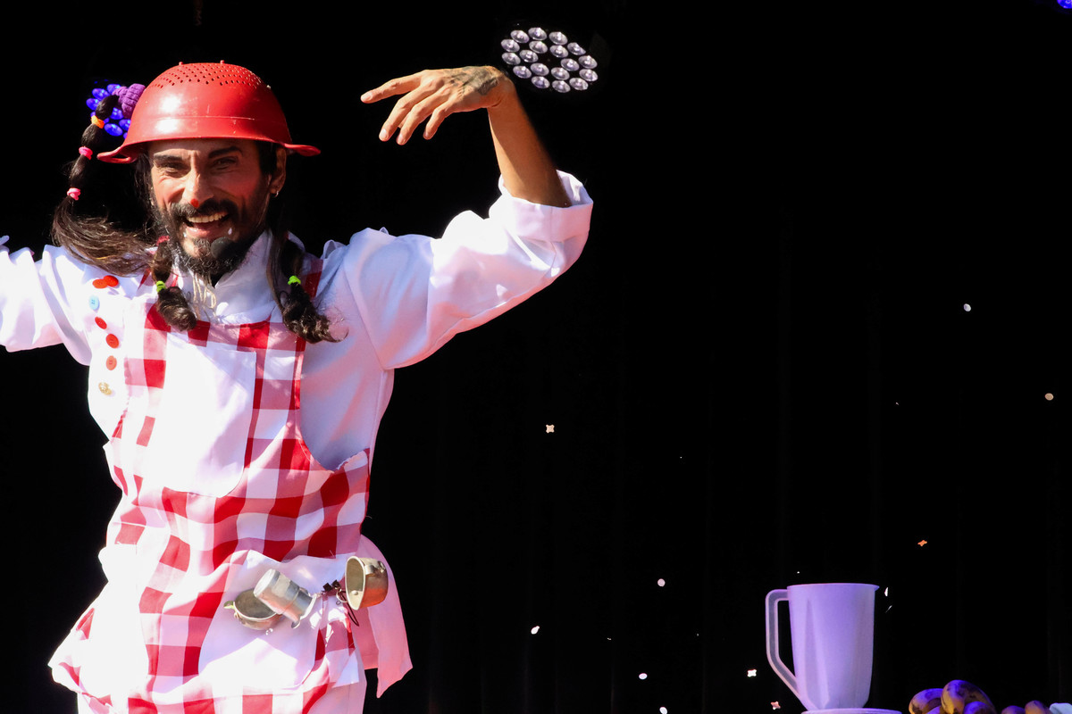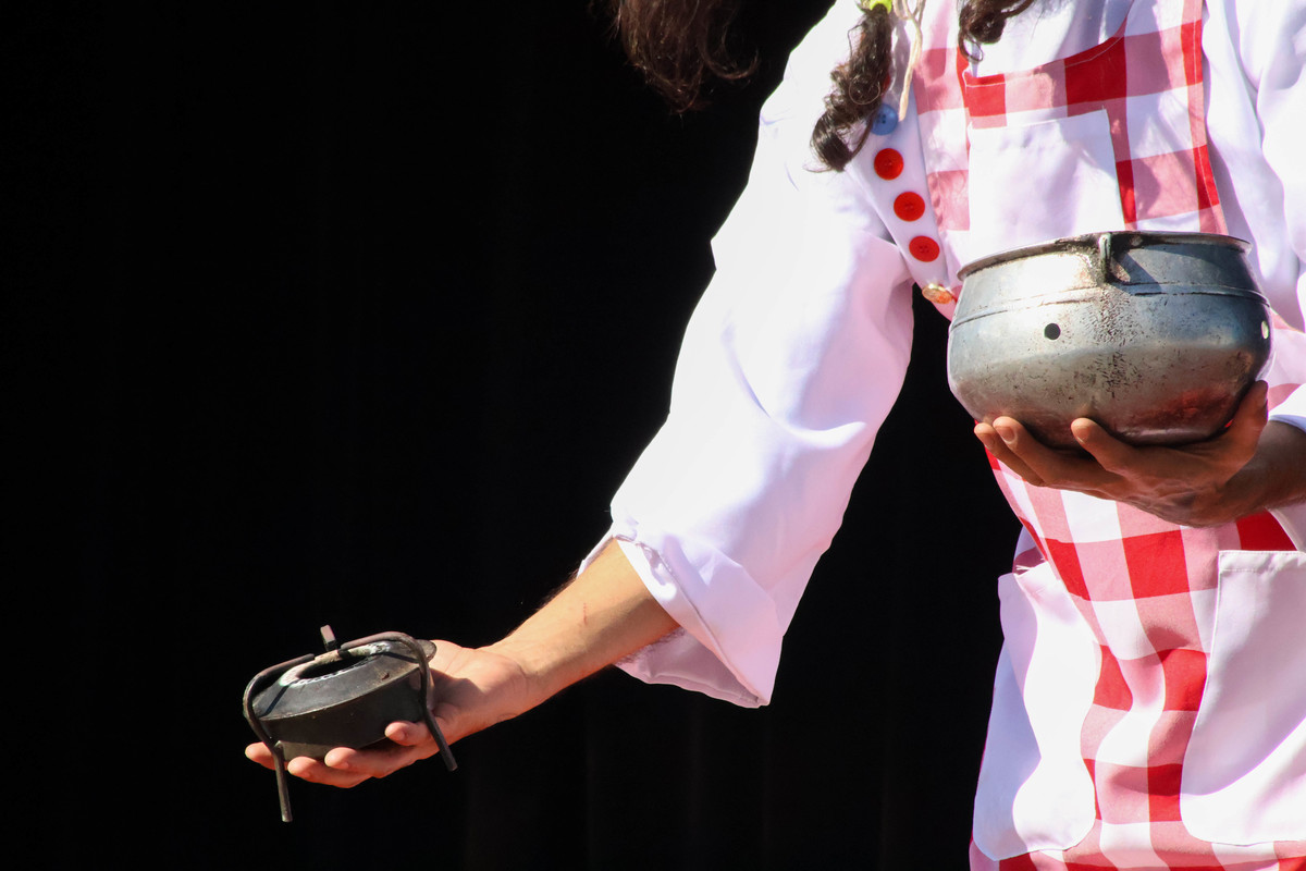 Entre músicas tocadas ao vivo e risadas espontâneas, Sequinho dividia histórias com o público, mexendo panelas, cantando e improvisando. No meio do espetáculo, um bolo de banana foi preparado diante dos olhos atentos da plateia, espalhando pelo ar o cheiro doce e acolhedor — como se cada cena fosse temperada com simplicidade e amor.